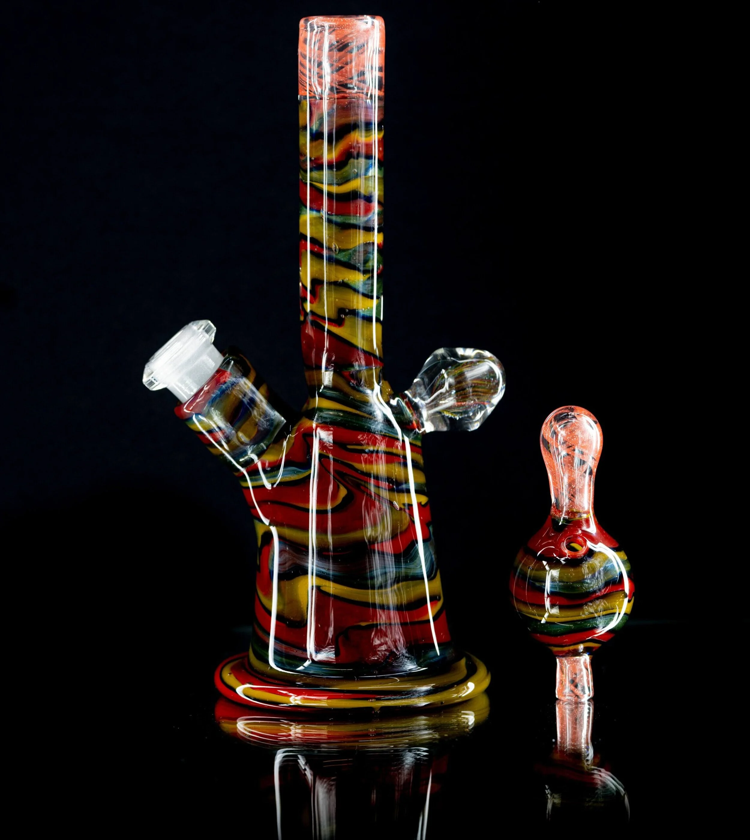Full set abstract coloured minitube with encased marble on the rear, 2 holes removable downstem .